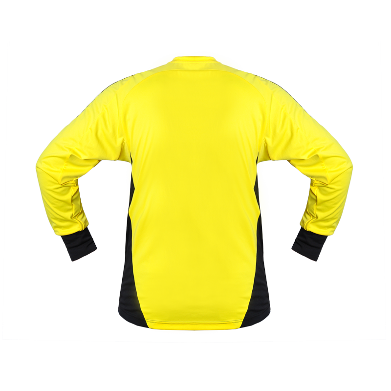 This long-sleeved sports jacket features a bright yellow and black side-by-side design, extending from the armpits to the hem. The cuffs are finished with black edges. The high saturation colors enhance visual recognition, making it suitable for outdoor sports such as football goalkeepers, while also providing both freedom of movement and close protection.
