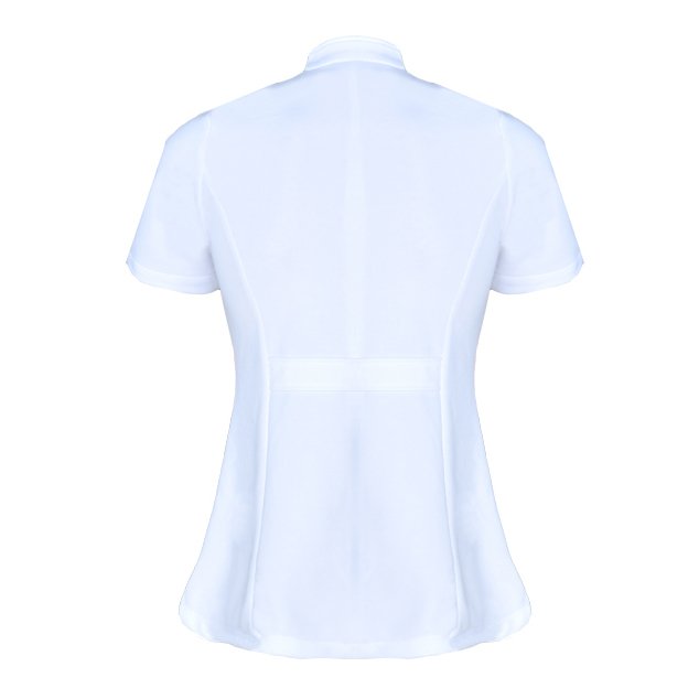 This nurse’s uniform has excellent elasticity and structure. The stand-up collar is paired with a front slit design, and there are practical pockets at the waist. The tailored cut with short sleeves and curved hem ensures comfort during extended wear.
